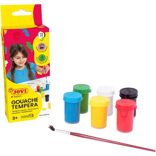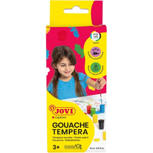 Школьная гуашь (темпера) с высокой покрывающей способностью, образует матовый, плотный, непрозрачный слой краски. Идеальна для работы по любой пористой поверхности, такой как плотная (не глянцевая) бумага, ватман, картон, дерево, для раскрашивания просохших фигурок из пасты для лепки, застывающей на воздухе, или из папье-маше.