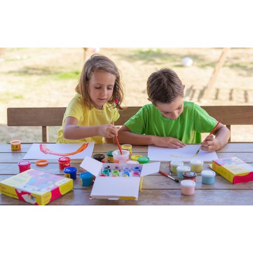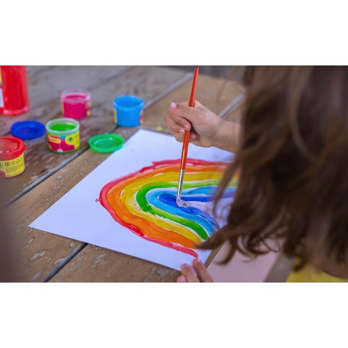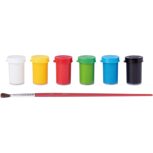 6 ярких базовых цветов (белый, желтый, красный, зеленый, синий, черный) в баночках по 15 мл в картонной коробке с европодвесом.