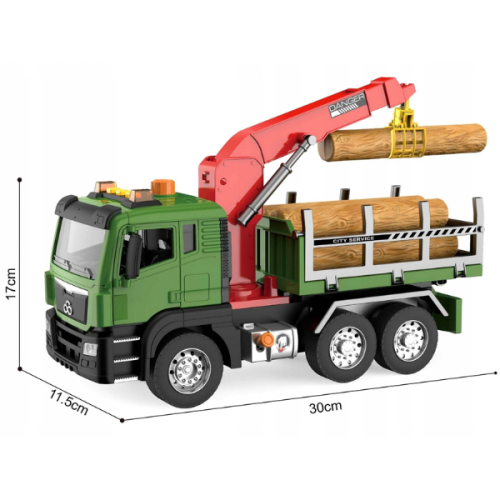 Инерционный грузовик для перевозки дров в масштабе 1:10 — это большая, детализированная игрушка, которая заинтересует любого ребенка, увлекающегося спецтехникой и грузовым транспортом. Грузовик оснащен фрикционным механизмом (инерционным), который позволяет ему легко двигаться по ровной поверхности после небольшого разгона. Реалистичности добавляют световые и звуковые эффекты, имитирующие работу настоящей техники, которые активируются при нажатии 4 кнопок на крыше кабины. Модель изготовлена из высококачественного и прочного пластика и имеет резиновые колеса. Игра с этим грузовиком способствует развитию мелкой моторики, воображения и ролевого мышления в сфере городских служб.