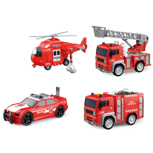 Игровой набор пожарной техники в масштабе 1:20 с инерционным механизмом подарит детям от 3 лет яркие эмоции и увлекательные сценарии для игры. В комплект входят четыре транспортных средства, выполненные с высокой детализацией. Машины и вертолёт оснащены световыми и звуковыми эффектами, что делает игру более реалистичной и интересной. Набор помогает развитию воображения и мелкой моторики и изготовлен из безопасного пластика.