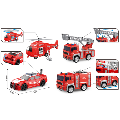 Инерционный Набор Пожарной Техники (свет / звук), масштаб 1:20