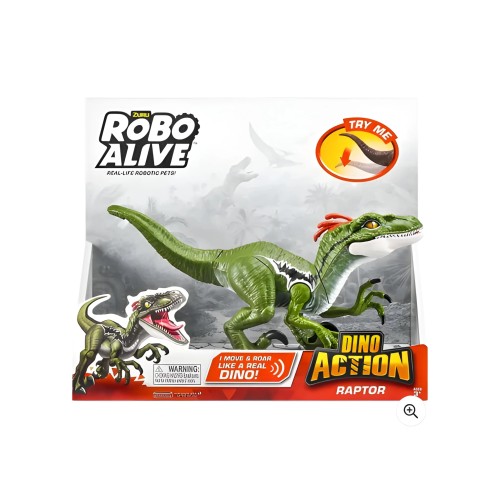 Cu jucăria interactivă Robo Alive din seria „Dino Action” — Raptor, copilul dumneavoastră va putea călători înapoi în era în care reptile reale și periculoase trăiau pe Pământ. Acest dinozaur robotizat prinde viață cu mișcări îmbunătățite și efecte sonore înfricoșătoare, garantând ore întregi de joacă captivantă!